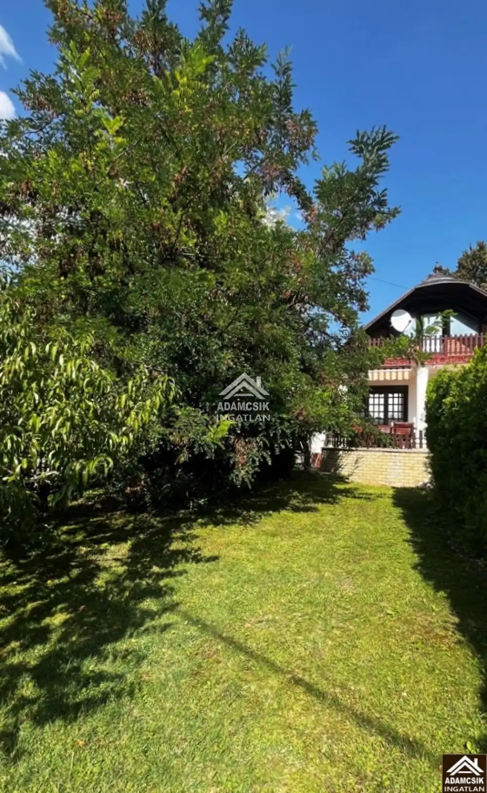 A kertben termő gyümölcsfák találhatók, melyek öntözése fúrt kútról lehetséges.