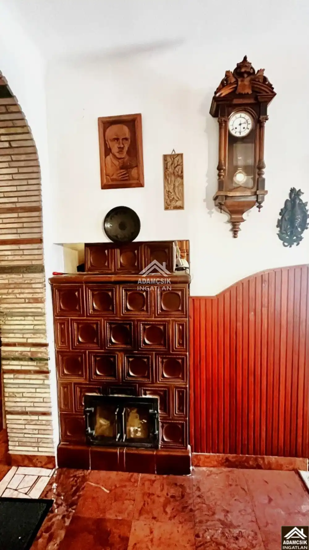 A ház fűtéséről Buderus gázkazán gondoskodik, illetve alternatív lehetőségként egy különleges cserépkályha is használható.