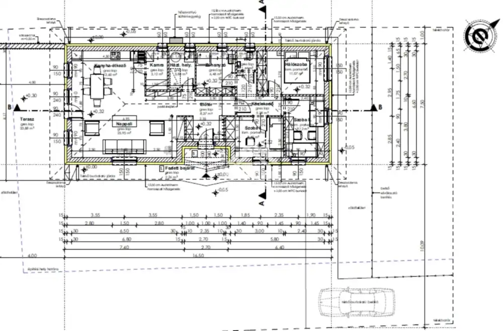 Az ingatlanban 3 szoba, amerikai konyhás nappali, kamra, fürdőszoba, mellékhelyiség, háztartási helyiség található.